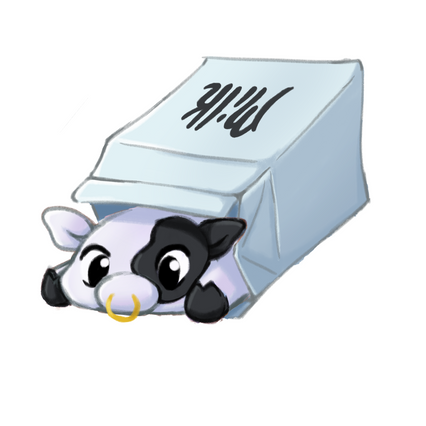 The second "Surprise Plush" is the milk carton cow. I used some scrap fabric to make the concept plush, which is why its purple and green. The spots were a difficult case in the beginning since I didn't have an embroidery machine at the time. so there was a lot of debating whether I wanted the spots printed on the fabric or sewn on. Sewn on looked better but took a lot of time. In the end though I ended up getting an embroidery machine and use the applique method. I also was able to use embroidery for the Milk cartoon Logos. I drew out a design on Clip Studio Paint and then converted the images into a embroidery pattern using Inscape.